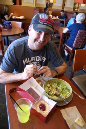 Wir futtern bei Panera Bread einen gesunden Greek Salat und zum Nachtisch einen leckeren Kopenhagener mit Kirsch (fast so gut wie die vom Bäcker hier bei uns in Deutschland). Dann checken wir für die nächsten 2 Nächte im Motel "7 Springs Inn & Suites" ein. Billig ist die Nacht hier zwar nicht gerade (112 $ incl. Tax), dafür sind die Betten erstklassig und der Pool ist schön warm. Außerdem liegt es nur 5 Minuten Fußweg weg vom Palms Canyon Drive mit seinen Restaurants und Geschäften.