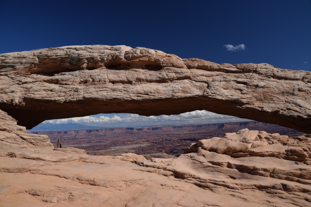 Der Mesa Arch bei Tag schon megaschööön - zum Sonnenaufgang allerdings grandios. Das haben wir uns diesmal aber nicht mehr "angetan". Angeblich bekommt man überhaupt keinen Platz mehr um ein Foto zu schießen. Damals, 2006 war schon gut was los (hier unser Link zu dem Reisebericht). Deshalb genießen wir den tollen Arch diesmal nur bei besten Wetterverhältnissen am Nachmittag.