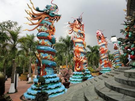 Wir checken schnell ein. Die Zimmer sind super und dann geht es mit dem Taxi quer durch die Stadt zum "SUOI TIEN" Wasserpark. So viele Roller auf einem Haufen haben wir noch nie gesehen. Man muss sich wundern, aber in dem Chaos sind alles so organisiert das wir den ganzen Tag keinen einzigen Unfall gesehen haben. Der Taxifahrer fährt nach Taxameter und wir zahlen gerade mal 10 € für die Stunde Fahrt. Als wir um 15:00 Uhr den Park (Eintritt 70.000 VND / ~2 €) betreten kommt kurz danach extremer Sturm auf und gießt eine Stunde lang so stark das alles geschlossen wird... schöne Scheiße !!! Somit können wir auch nicht den einzigen Coaster fahren der dort steht.