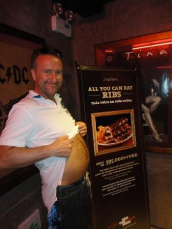 Also weg hier, wir springen ins nächste Taxi und ab zum "Hard Rock Cafe Hoh Chi Minh" zum Essen. Dort hat man uns wohl schon erwartet, denn es gibt hier "All you can eat Ribs"JJJ. Die Bedienung ist sehr nett und setzt sich erstmal zu uns zum quatschen. Wir erzählen ihm unsere Reiseroute und wo wir herkommen. Er warnt uns davor hier in der Stadt mit einen Roller zu fahren. Nee, das machen wir garantiert auch nicht. Nach etlichen sehr guten Ribs rollen wir aus dem Lokal und müssen noch ne Runde um den Block gehen bevor wir uns ein Taxi schnappen und uns zurück zum Hotel fahren lassen.