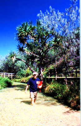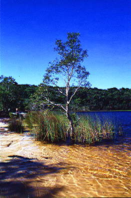 Tag 12: 24.03.00 Die ganze Nach habe ich kaum geschlafen. Ich bin voller Vorfreude auf den nächsten Tag auf der Insel. Dieses Mal haben wir einen anderen Veranstalter gewählt wo der Ausflug nur 40 A$ kostet aber nur bis 16:00 Uhr geht. Aber auf diesem Ausflug kommen wir an dem wohl schönsten und auch bekanntesten See, dem "Lake Mc Kenzie" vorbei. Das Wasser ist so rein das man mit offenem Mund schwimmen kann. Es ist verboten mit Sonnenschutzmittel auf der Haut in den See zu gehen. Das ist natürlich gerade in Australien sehr schwer da man sich ständig eincremen muss wegen dem Ozonloch. Deshalb ist hier die Badepause wohl auch nicht länger als 1 1/2 Stunden... schade. WIR KOMMEN WIEDER - GARANTIERT !!!