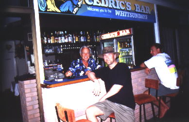Great Barrier Reef zu Schnorcheln. Ein Motel ist auch schnell gefunden. Wir mieten uns 3 Tage bei Crocodile Dundee im "Island Inn Motel" für 45 A$ die Nacht ein. Seine Beschäftigung besteht aus Schlafen in einem dicken Ledersessel an der Rezeption und seiner zugelaufenen Siamkatze. Auch bei ihm kann man Touren buchen.