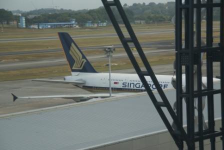 Bei Ankunft spurten wir uns dann auch damit unser Anschlussflug nicht ohne uns los geht. Vor dem Gate gibt es erstmal noch einen Bottleshop den wohl noch einige genutzt hatten um sich vor Abflug noch schnell ne Flasche Wodga zu genehmigen... Drinnen im Flieger mit Namen "GAZIANTEP" leuchtet uns ein typisches Türken-türkis entgegen. Essen und Service sind aber top, es gibt nix zu meckern. Große Bildschirme sind auch in den Sitzen wo wir uns "This is it" von Michael Jackson anschauen. Den Rest des Fluges verpennen wir, wie fast alle anderen auch. Pünktlich gegen 16:00 Uhr sind wir im Landeanflug auf Singapore.