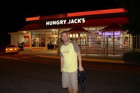 Warum unsere Kreditkarten immer noch nicht funzen fragen wir uns auch, als wir nach dem einchecken ins vorgebuchte Motel "Comfort Inn Bel Eyre", in der Nähe des Airports, hungrig bei "Hungry Jack's" (dem Burger KING von Australien) aufschlagen. Jetzt wird es uns doch etwas unheimlich. Auch bei der Tanke daneben, wo wir vergoldete M&M´s für 5 AUS $ kaufen gehen beide Karten nicht (ERROR 107 - hört sich schlimm an- Masern ?) Sind wir am anderen Ende der Welt nun bald mittellos ? Na, wir wollen ja eh irgendwann auswandern, dann werden wir uns hier wohl mal einen Job suchen müssen... vielleicht bei Hungry Jack´s`???