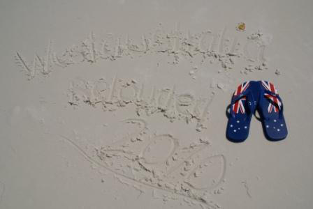 sie sind schon in Australien. Man sieht kein Flecken Haut mehr... dafür gibt es