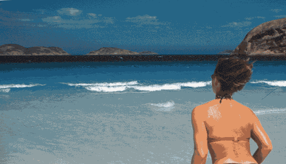 Panorama der "LUCKY BAY" . Leider kommen die gescannten Dias