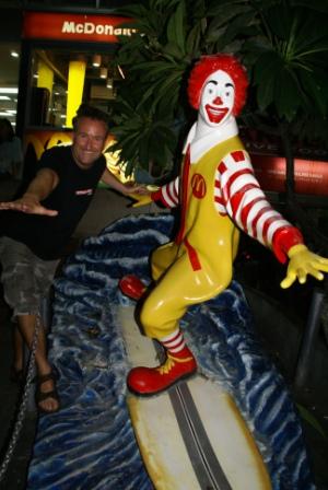 Auf dem Weg zum Supermarkt begegnet uns unser alter Freund Ronald, den alten Sufer. Aber essen wollen wir da nicht. Im Mini-Markt lassen wir uns auch nicht von den gesunden Tetra-Packs im Kühlschrank bekehren.