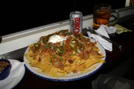 Platz und genießen bei BBQ-Pulled Pork Sandwich und Nachos den Ausblick auf das