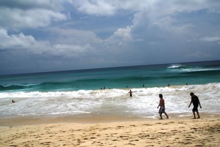 tummeln sich ne Menge Surfer und warten auf die perfekte Welle. Der Strand ist