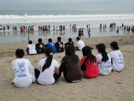 Auf dem Rückweg wundern wir uns... "Gibt es jetzt was umsonst am Strand ??" Nö, es ist Wochenende und die Balinesen strömen zum Feiern an den Strand... an der Straße stehen ne Menge Airbrushgestylte Busse mit denen sie angekommen sind. Wer hier noch fahren muss tut uns leid...