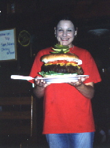 6 Pfund Hackfleisch,  2 Tomaten , 1 große Zwiebel,  1/2 Kopf Salat, 1 1/4 Pfund, Käse, 1 Glas Majonäse, 1 Glas Gurken und ne Menge Ketchup und diverse andere "geheime" Zutaten lassen diesen Burger einzigartig schmecken.