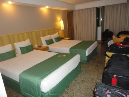 Unser für die nächsten 5 Nächte gebuchtes Hotel "ROYAL RIO PALACE" ist erst ca. 8 Jahre alt und liegt in 3. Reihe an der Copacabana. Die direkten Strandhotels sind einfach zu teuer, und es ist dort auch Abends sehr laut (wegen dem Verkehr). Immerhin ist die Strandstraße 6-spurig !!