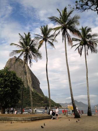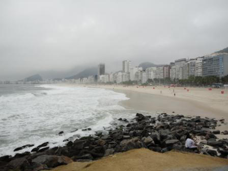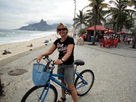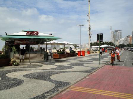 Mit den Fahrrädern geht es nun einmal den Strand der Copacabana & Impana entlang. Das sind schon ein paar Kilometer. Bei 25 Grad aber kein schweißtreibendes Vergnügen. Vor ein paar Tagen waren hier noch fast 40 Grad. Neben der Promenade ist eine Fahrradspur-Spur, wo aber auch verrückte Skateboarder sich ausleben, also Vorsicht, sonst kracht es...