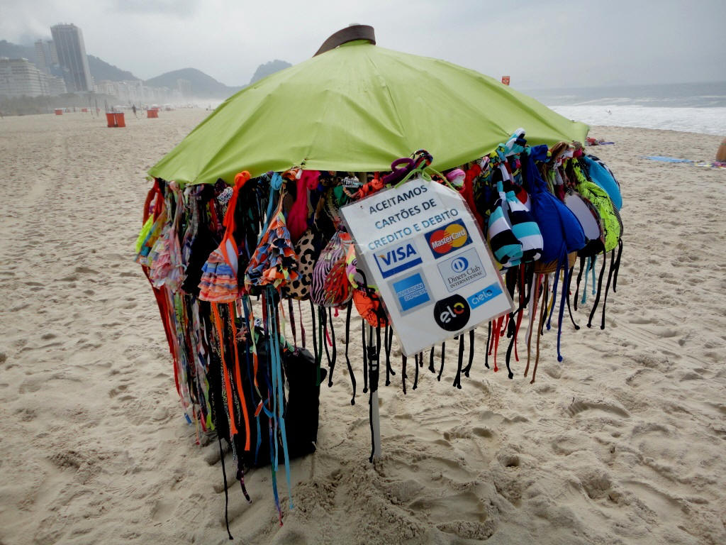Er besorgt mit uns auch noch eine brasilianische Prepaid-SIM-Karte im "RIO SUL-Shoppingcenter" beim "Las Americanas" (Supermarkt) ,die wir dann erstmal mit Guthaben bei TIM (Mobilfunkanbieter) aufladen. Eine nicht ganz unkomplizierte Sache wenn man kein brasilianisch spricht. Die Karte ist dann innerhalb von 24 Stunden frei geschaltet. Nun können wir preiswert mit ihm und auch nach Deutschland sehr preiswert telefonieren. Danach gehen wir zu einer Radel-Vermietung, die er uns empfiehlt. Vermieter wollen immer ein Dokument als Deposit, irgendeins (z.B. Pass, Führerschein, Perso). Den Pass geben wir normalerweise niiiiiiiiiiie aus der Hand, immer nur den Perso oder den Führerschein. Aber auch Reisefüchse wie wir haben diesmal ein zweites Dokument vergessen. Weil Achim den Besitzer kennt und der diese in einen feuerfesten Tresor einschließt, lassen wir einen Pass also ausnahmsweise dort. Die Miete ist billig. (3 Stunden 25 R$ (ca. 7 €) und die Räder sind gut). Unbedingt ein Schloss mitgeben lassen und die Räder trotzdem nicht lange aus den Augen lassen !