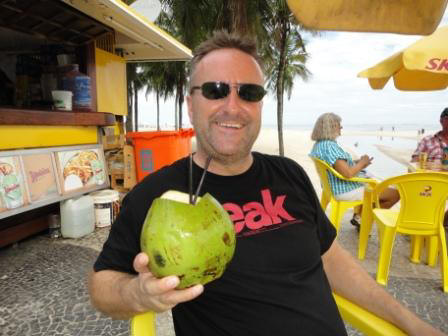 Wir fahren die beiden Strände rauf und wieder runter. Eine schöne Strecke. Natürlich kosten wir auch die Cocusnüsse, die überall angepriesen werden. Schmeckt ziemlich neutral, Norbert meint auch etwas nach Kontrastmittel..brrr.. noch lacht er...