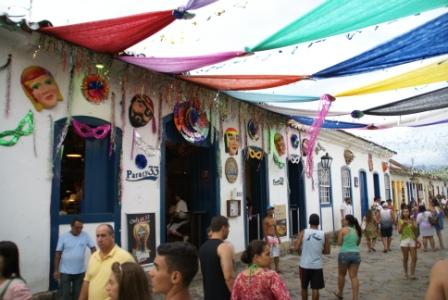 Der Preis ist zwar überteuert, aber wir haben bei der Hitze keinen Bock frisch geduscht schon wieder im eigenen Saft zu baden. Klar wollen wir heute auch Karneval feiern, deshalb sind wir doch auch in Brasilien !!! Aber wir wollen was besonderes machen, nicht NORMAL ! Deshalb fahren wir nach PARATY - da geht heute DIE PARTY ab, die wir uns wünschen ! "BLOCA DA LAMA". Was das ist erfahrt ihr hier ;-) Nach 15 Minuten Überfahrt legen wir mit dem Speedboot wieder am Hafen von Jacarei an. Dort wartet auch schon Luis mit seinem Black-Meriva auf uns. Wieder ist er pünktlich und winkt uns schon entgegen. Auf unserem Boot, was mit feierwütigen Brasilianern nun zurück nach Ilha Grande fährt, ist mehr Bier als Mensch an Bord ;-)) Luis bringt uns in 2 Stunden zu unserer letzten Pousada nach Paraty. Diese Unterkunft ist in jeder Hinsicht ein VOLLTREFFER !! Sie ist zwar etwas Abseits gelegen (am Ende vom Jabaquara Beach), aber für unser geplantes Event perfekt. Zu Fuß ins Zentrum der Altstadt geht man auch nur ca. 20 Minuten.