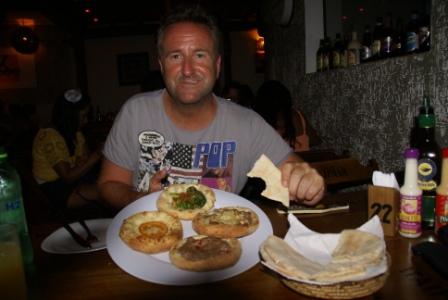 Wir buchen für Morgen noch eine Tour zum Trindade Beach der noch weiter südlich ist. Also wir bei "Paratytours" rauskommen fängt es an zu schiffen...das glaubt man nicht. Es ist wie ein Wasserfall der vom Himmel kommt... oder doch die Sintflut - wo ist die Arche Noah ?? Wir flüchten in das nächst beste Lokal und landen bei einem Araber. Dort bestellen wir spontan einfach irgendwelche Kleinigkeiten die uns sooo begeistern...wow !! Leider habe ich mir den Namen des Lokals nicht gemerkt.