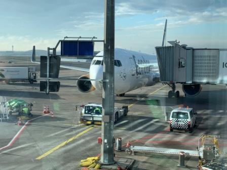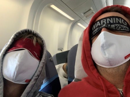 Der Abflug mit CONDOR erfolgt etwas zeitverzögert. Im Flugzeug sitzen auch die anderen aus unserer Gruppe (noch unbekannt), wie spannend. Wer das wohl sein wird ? Wir haben gestern schon Vorabend-Check-in gemacht. Zum Glück, denn wie sich später rausstellte war die Abfertigung sehr schleppend und nicht COVID-19-abstandsgerecht.  Langstrecke am Tage ist schon anstrengend. Zumal das Entertainment-Programm nicht über die Bildschirme, sondern nur übers Handy zu schauen ging. Der Flieger ist knallvoll. So richtig wohl ist uns dabei nícht.