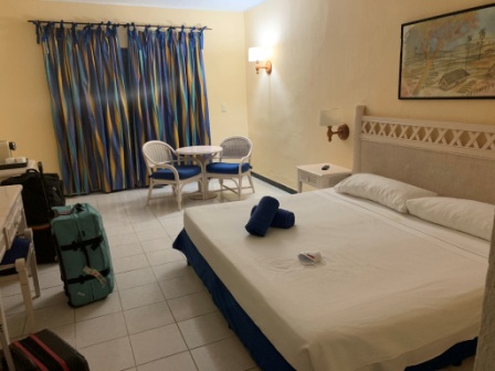 Im Bus sitzen schon zwei Pärchen aus Rosenheim. Wir machen uns miteinander bekannt und sind gleich auf einer Welle. Schön ist das ☺. Dann steigt noch ein Familie aus Frankfurt zu und los geht es zum Hotel in Jibacoa (das liegt zwischen Varadero und Havanna). Dort werden wir die nächsten 24 Stunden verbringen, bis unsere Rundreise beginnt. Die Fahrzeit beträgt ca. 1 Stunde. Bei Betretung des Hotels Memories Jiobacoa**** wird Fieber gemessen und alles desinfiziert. Vorbildlich !