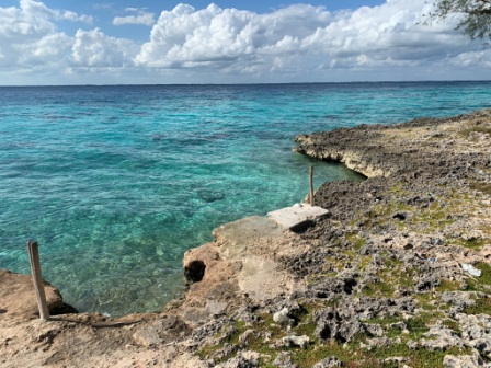 Dann machen wir einen Badestop an der "Schweinebucht" mit Schnorchelmöglichkeit. Dort haut sich Norbert schön einen Koralle in den Fuß. Zum Glück hat er Badeschuhe an und es gibt nur eine blau angelaufene Hacke.  Sonst wäre der Urlaub jetzt wohl gelaufen. Das Wetter ist toll, wir haben so um die 25 Grad. Nicht schwül, ideal zum radeln