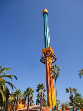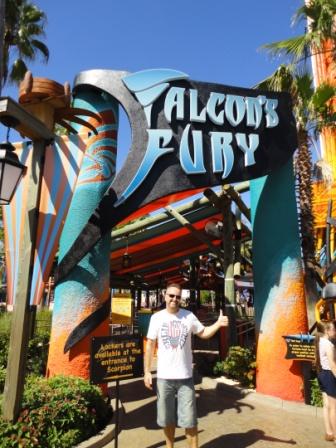 Hier nur ein paar spontane Bilder aus dem Park: Die neueste Attraktion in 2014 ist der FREE FALL TOWER "Falcon´s Fury". Hier fahrt sich oben der Sitz in Liegeposition und man fällt mit dem Gesicht nach unten runter. Nichts für mich... aber Norbert traut sich und ist begeistert ! Die lassen sich auch immer wieder was Neues einfallen ;-)
