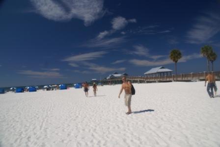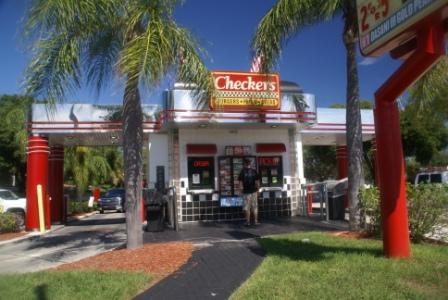 Bevor es an den Strand geht stoppen wir erstmal bei Checkers. Dort gibt es gute Burger... hmm....lecker ! Dann geht es weiter auf die Landzunge Clearwater Beach. Die Straße dahin ist schon nett mit Palmen bepflanzt.