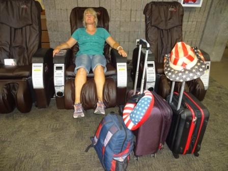 Die Abgabe des Mietwagens bei ALAMO geht wieder flotti flotti. Da bleibt noch genug Zeit für eine gute Massage. Man hätte hier auch noch Lei´s to go aus dem Kühlschrank kaufen können. Der Wiki Wiki Shuttle (was für eine geiler Name :-)))  bringt uns zum Flugzeug mit dem wir erstmal wieder nach Hololulu fliegen.