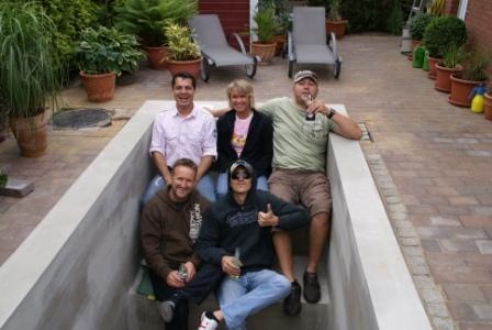 13.06.2009 Heute früh um 10:00 Uhr kommt Mr. Love pünktlich und ausgeschlafen (???) ,nach 3 Stunden Schlaf, zum Frühstück zu uns. Danach haben wir drei uns an den Rest der Pflasterarbeiten gemacht. Wir haben Mitte Juni und ich sitze heute mit dicker Winterjacke hier weil es saukalt ist... brrr..., unglaublich !!! Ist noch kein Poolwetter...