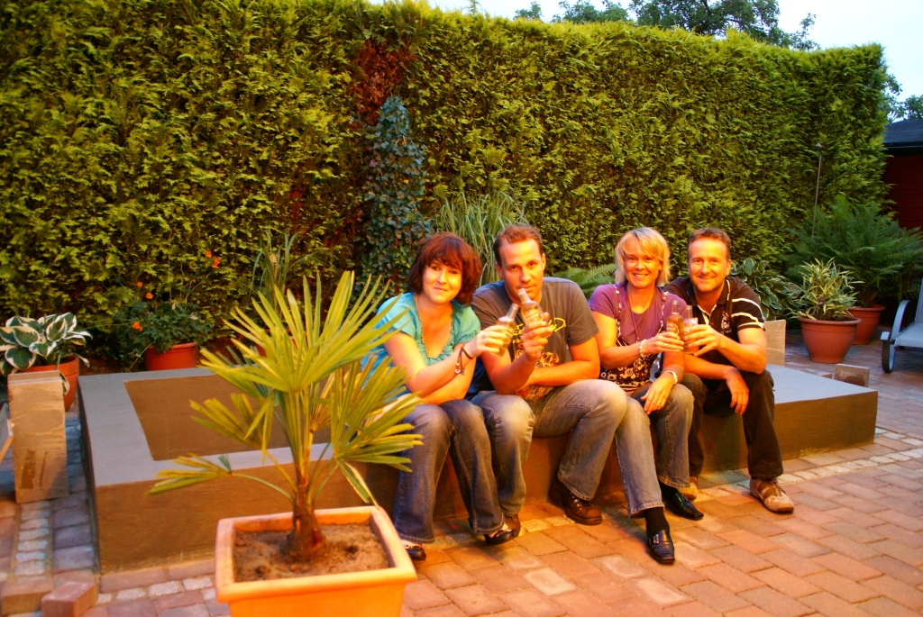 Abends gab´ es mit Silke & Olli, die mit uns in Kapstadt waren, einen entspannten Umtrunk am fast fertigen Pool mit einem schönen "Savanna light"