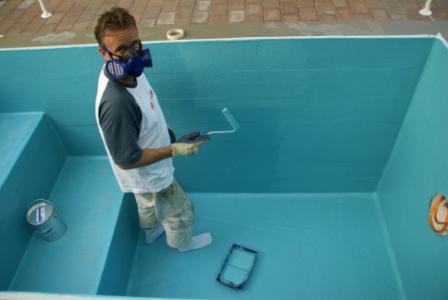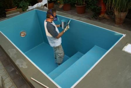 Anstrich mit verdünnter Schwimmbadfarbe (10 %) grundieren |