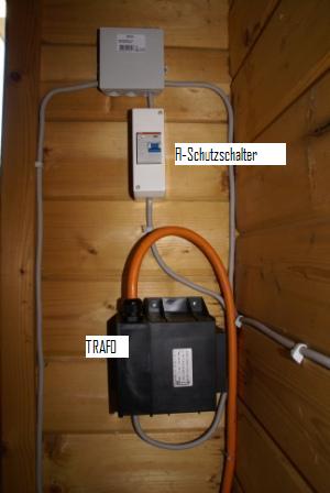 für die Pumpe), setzt den FI-Schutzschalter und schließt dort den Trafo an für