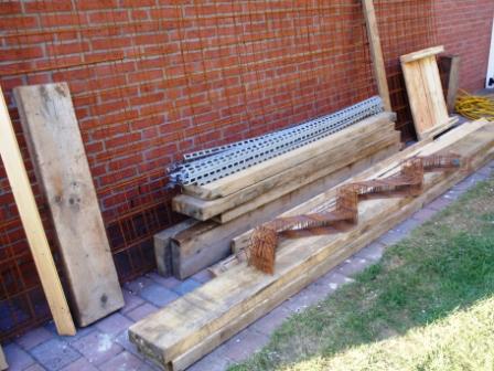 Außerdem besorgen wir Schlangenabstandshalter in 8 cm Stärke, Folie, Schalungsbretter und Unterlegschienen.