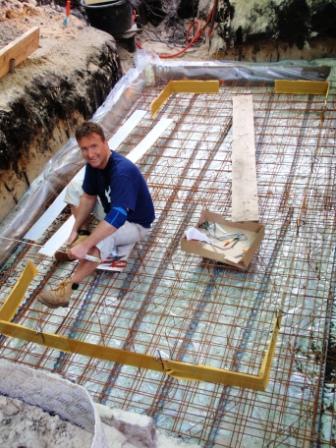 Die nächsten Tage soll die Bodenplatte geschüttet werden. Bei der Auswahl der Betons im Grundwasserbereich ist einiges zu beachten. Wie gut das man im Betonwerk kompetente Mitarbeiter findet die einen gut beraten. Wir ordern 2 cbm WU-Beton C 20/35 mit "ATON" (Fließmittel) 8 mm Körnung den man nicht mehr mit einem Flaschenrüttler verdichten muss.