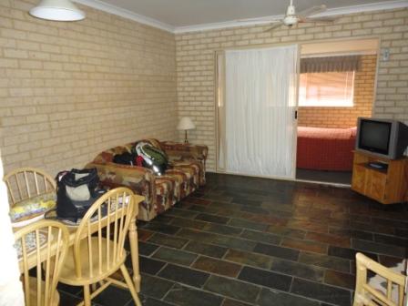 Nun fahren wir weiter bis nach Busselton. Das Motel gegenüber der Tourist-Info sieht gut aus, schauen wir mal. Die Omma am Empfang ist schon steinalt und die Betten auch... nee, nee... und wech... Als wir bei der nächsten Unterkunft (Holiday Villas) die fragen ob die Betten o.k. sind meint die Mutti am Empfang doch glatt das neulich einer hier war der nur eine Nacht bleiben wollte und dann auf einen Monat verlängert hat und ihr danach das Bett sogar abgekauft hat....ja,ja, ja... das soll man glauben ... ? http://www.geographebay.com/accom_result1/busselton-villas-and-caravan-park/?track=0 Die Zimmer sind ganz o.k., aber 4 **** ?? Das hat sie wohl selbst gedruckt. Wir vergeben 3. Es gibt sogar einen komplette Kochnische und eine Sitzecke für 4 Personen zum frühstücken. Zwar sind die Tischsets noch aus den 70ern, aber egal. Einen Pool gibt auch. Wir zahlen 110 AUS$ (~ 69 €).