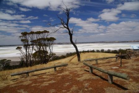 grün. Danach fahren wir am "Dumbleyung Lake", einem Salzseen,