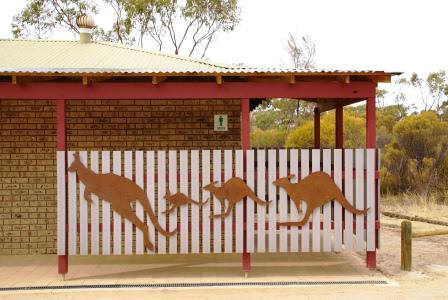 Parkgebühr 7 AUS$ pro Auto. Das ist fair und auch hier wieder diese witzigen Toilettenhäuser.