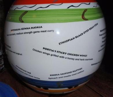 Die Menükarte ist  auf selbst entworfenen und bemalte Porzellanvasen geschrieben.  Die Jahreszeiten sind hier ja entgegengesetzt zu denen die wir in Deutschland haben. Sie steht auf jedem Tisch und kann auch zur Erinnerung gekauft werden (Leider nicht billig).