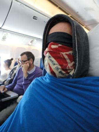 Maschine ist knallvoll. 11 Stunden Flugzeit liegen nun vor uns. Norbert hat sich