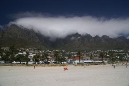 Bloombergstrand an von wo aus man einen schönen Blick auf den Tafelberg hat.