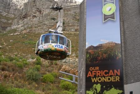 Raus aus den Federn und schnell geschaut wie das Wetter heute ist. Oh, der Himmel ist ja blau ;-))) Na, dann mal schnell ein paar Toast verdrückt und ab zur Seilbahn vom Tafelberg. Um 9:00 Uhr stehen wir noch ohne Wartezeit am Counter für die Tickets an und zahlen 205 ZAR (ca. 19 €) / p. Pers. für ein Hin- und Rückfahrtticket. Kein Aufstieg diesmal. Die Wartezeit dauert ungefähr 10 Minuten bis wir in der Gondel stehen. Oben angekommen sind wir froh Jacken und Pullis mitgenommen zu haben. Es ist noch sehr frisch.