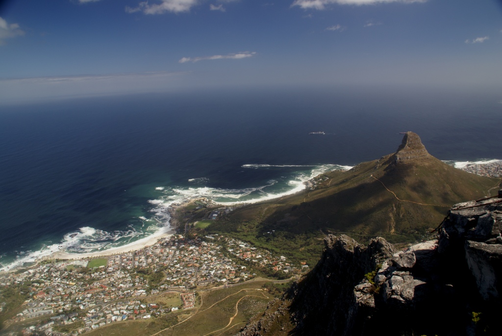 Wir wandern 2 Stunden umher, genießen die herrlichen Aussichtspunkte, und erfreuen uns an den Reiseleitern die in allen Sprachen die Leute unterhalten. Hier oben ist die ganze Welt vertreten. Angefangen von denen die hochsteigen, oben den ganzen Tag verweilen und den Chinesen die am besten alles Sehenswürdigkeiten in Kapstadt an einem Tag abreißen würden.