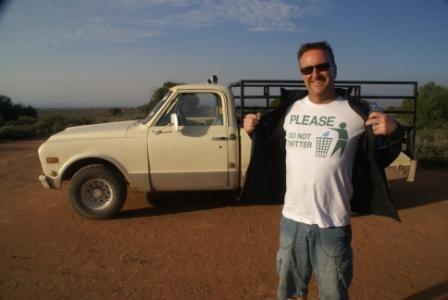 Unser Wecker klingelt heute schon um kurz vor 5. Da wir uns um 5:30 Uhr mit dem Meerkat-Man "Devey" am dunklen Checkpoint treffen. Dorthin kommen noch 6 andere Gestalten, auch einige Deutsche die den Mund nicht aufbekommen. Devey ist aber auch noch nicht so ganz wach, gibt erstmal Kaffee und Reubusch-Tee aus (igitt)...