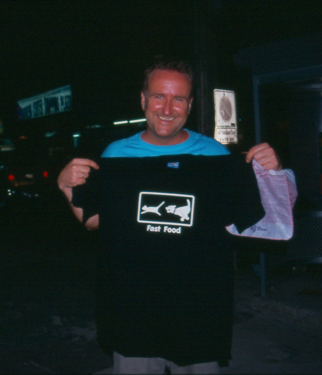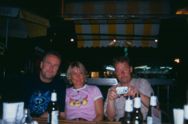 Abends in Chaweng ersteht Norbert in einem Shop wieder mal ein T-Shirt für seine Sammlung ;-) Dann hatten wir eine feuchtfröhliche Nacht mit netten Menschen aus dem Fernwehforum. Leider ist das Pärchen, welches das Treffen organisiert hatte, nicht aufgetaucht... Es wurden ein paar mehr Singha´s vernichtet... im Hintergrund spielte ein Double von Robbie Williams live. Das hörte sich zum Schluss gar nicht sooo schlecht an... lag aber wohl am Pegel den wir alle hatten.