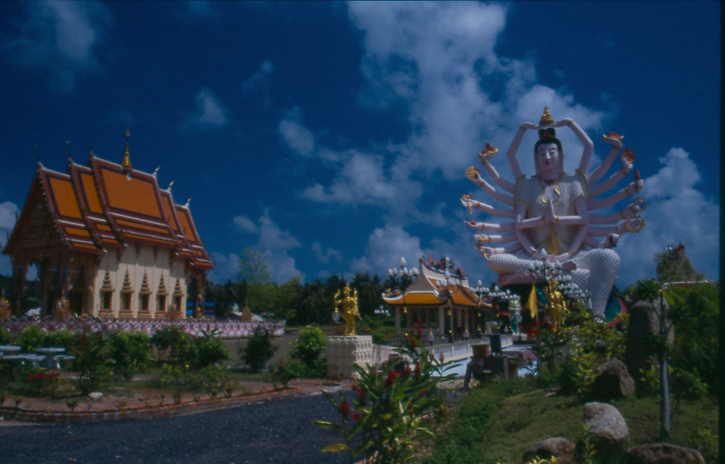 Die Tempelanlage, welche letztes Jahr bei unserem Besuch noch im Bau war, ist nun fertig. Wir stoppen an schönen einsamen Stränden und badeten in der tollen Thong Thakian Bay.