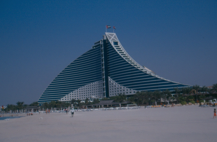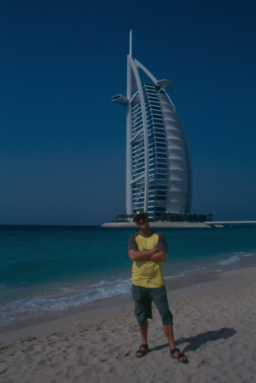 Dann steigen wir ins Taxi und lassen uns von einem Inder bis zum "Burj al Arab" fahren. Das ist das 7*-Hotel was sich wohl jeder Dubai-Urlauber anschaut. Wir sind aber nicht rein. Das hätte was gekostet und man muss sich schick anziehen. Deshalb haben wir es nur vom Strand aus angeschaut. Um an den Strand zu kommen muss man aber durch eins der Strandhotels kommen. Das ist gar nicht so einfach, die Kontrollen sind recht gut. Aber irgendwann schafften wir es doch ;-)