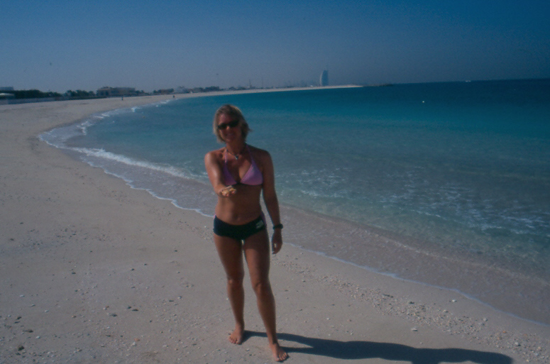 Wir fuhren an unserem ersten Tag mit dem kostenlosen Beach-Shuttlebus des Hotels zum öffentlichen Strand. Wir waren noch sehr früh da. Da war es noch nicht so voll. Wir wanderten den Strand entlang Richtung Burj al Arab, was wir aber nicht geschafft haben. Es war zu Fuß leider zu weit weg. Hier gab es tolle Muscheln am Strand. Das Wasser war aber, wie nicht erwartet, schweinekalt... brrr... und im Hintergrund keine Palmen. Irgendwie öde...gerade wenn man aus Thailand kommt ist das schon sehr gewöhnungsbedürftig.