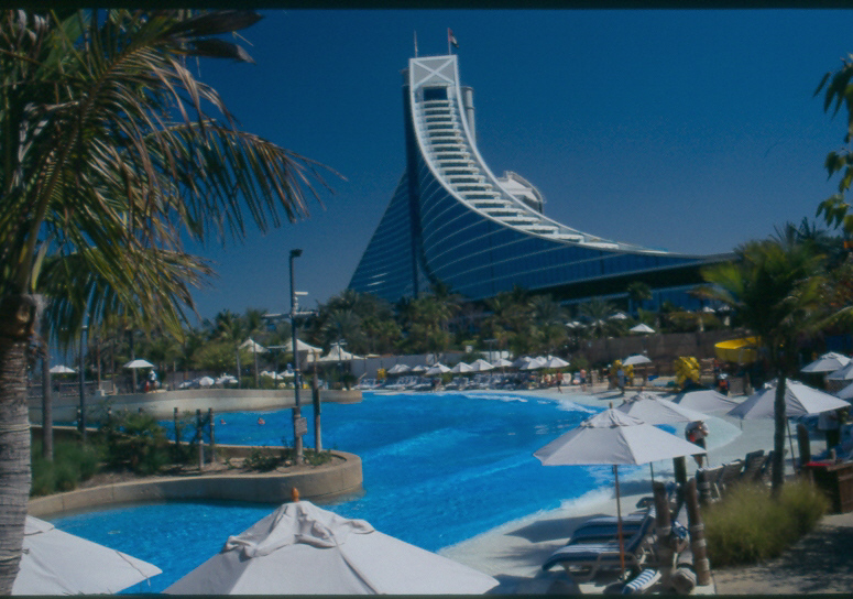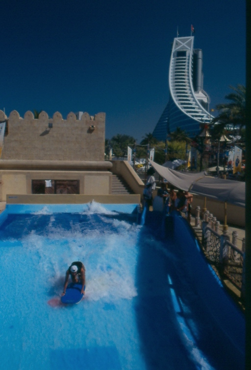Danach hatten wir uns das "Jumeira Beach Hotel" angeschaut das wie eine Welle gebaut wurde. Eine architektonische Meisterleistung. Die Übernachtungen dort sind aber genausowenig für "Normalos" wie wir, bezahlbar. Der dazugehörige Wasserpark "Wild Wadi" (was für ein bekloppter Name) sieht aber einladend aus. Deshalb haben wir uns spontan entschlossen den restlichen Tag dort zu verbringen. Wir lieben ja Freizeit- und Wasserparks und hier waren wir wieder in unserem Element. Der Eintritt war recht happig (ca. 35 € p.P.). Aber es lohnt sich. Mein Kollege hatte mir mal davon vorgeschwärmt. Danke Hauke für den Tipp !! Hier mal ein paar Bilder: