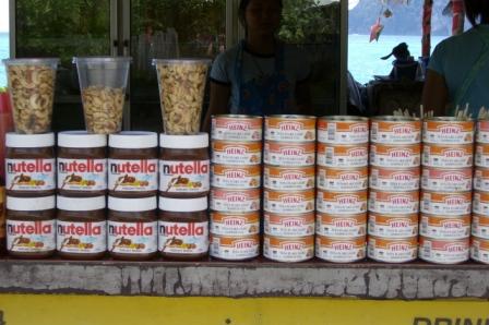 Mit einem herrlichen Blick zur kleinen Insel Phi Phi Lee. Gegenüber von unserer Anlage war eine nette Pancake Bar die auch super frische Shakes zubereitete. Natürlich leben auch hier NUTELLA & HEINZ ;-)))) Somit war unser Snack für zwischendurch gesichert.