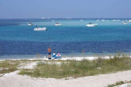 Der Strand den man von Parkplatz hinter der Brücke erreichen kann ist so breit das man schon aus der Puste ist an die andere Seite zu gelangen. Dort gibt es haufenweise Delfine zu sehen. Das Wasser ist auf der Seite zur Brücke so seicht das man auf dem 5$ Sufbrett super im Wasser verweilen kann. Nix mit Baywatch-Einsatz.