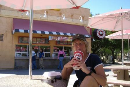 Sonntag, 24.09.06 Heute früh hüpfen wir förmlich aus den Federn, stärken uns schnell mit ein paar Bagels bevor es zum nicht weit entfernten "SIX FLAGS MAGIC MOUNTAIN" aufbrechen. Einer der TOP-Achterbahnparks weltweit !! Die mal wieder gestiegene Parkgebühr in Höhe von 15 $ muss man erstmal wieder verdauen. Bei dem Anblick der Bahnen vom Parkplatz aus vergisst man das aber schnell wieder und wir federn dem Eingang entgegen. mir einer Cola-Dose mit Coupon-Aufdruck gibt es den Eintritt billiger. Hier haben wir 1995 unseren Fable für die Coasters entdeckt. Wer Top-Bilder von den Achterbahnen sehen will klickt bitte hier auf diese Seite unseres Freundes Olli unter www.worldofcoaster.com . Unser Freund verwaltet alle Bilder und schreibt tolle Bericht zu den Bahnen.